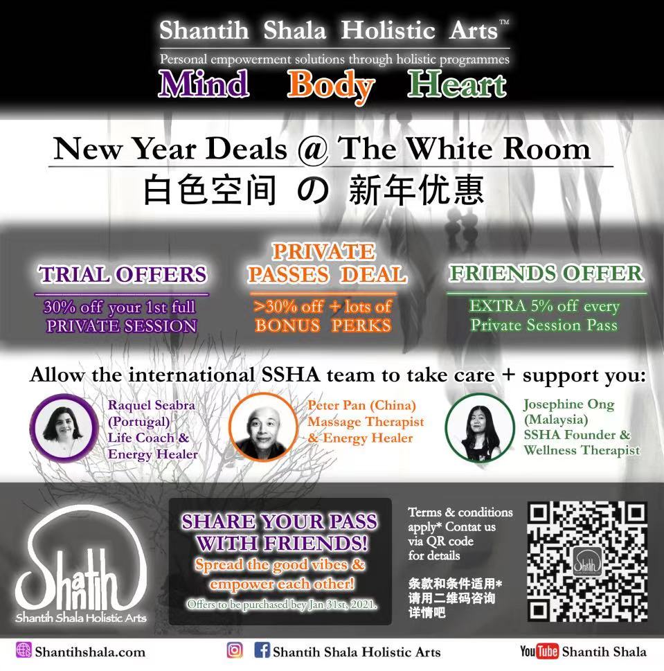 Since 2008, Shantih Shala Holistic Arts (SSHA) was founded to serve as a platform promoting empowerment through the healing arts, specifically via Holistic practices to manage the Mind, Body and Heart. With the mission of helping others to empower themselves on a physical, mental and emotional level holistically, SSHA offers effective, high quality skills and practical professional expertise.